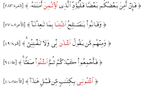 This only occurs in a few verbs. Examples of this can be found in the following aayaat: