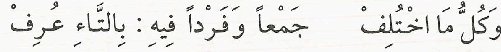 Meaning: "and all that differ.... in plural or singular in it with a ta' , became known".
