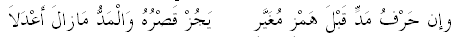 caused by the dropped hamzah, the medd is then is affected and there are two allowable ways of lengthening, the first, which is the preferred, is dropping the four vowel count